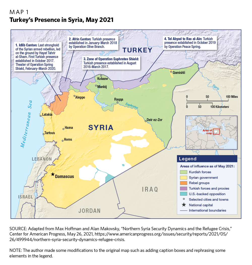 80 Max Hoffman and Alan Makovsky, “Northern Syria Security Dynamics and the Refugee Crisis,” Center for American Progress, May 26, 2021, https://www.americanprogress.org/issues/security/reports/2021/05/26/499944/northern-syria-security-dynamics-refugee-crisis.